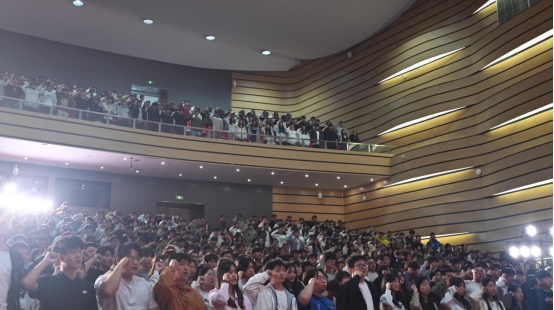 我宣誓:热爱祖国、忠诚人民,做爱国者坚守初心;我追求理想坚定信念,做逐梦人担当使命;我并修德技奉献本领,做实干家出彩人生。请党放心,强国有我!建环学院学子高举右拳庄严宣誓,声浪如潮。大会在全场师生齐唱《相信自己》的激昂旋律中圆满落幕。