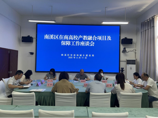 为进一步深化产教融合育人与地方经济发展工作,2025年6月11日,建筑与环境学院(以下简称“建环学院”)党总支副书记院长郭莉梅党总支书记温燕萌副院长张娅建工教研室党支部书记文祝赴南溪区住房和城乡建设局参加产教融合项目及保障工作座谈会。南溪区住房和城乡建设局局长何柄宏、副局长刘学总工程师顾栖宇住房保障和房地产事务中心主任侯洁以及各部门代表参加,双方围绕产教融合育人与地方经济发展两大核心主题,展开了深入而富有成效的交流。