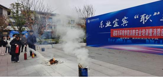 从发现火情、报警求援、疏散逃生到使用灭火器扑灭初期火灾,每一个环节都紧张有序地进行。在灭火器使用实操环节,师生们在讲解员的指导下,亲自动手操作灭火器,成功扑灭了模拟火源,进一步巩固了理论知识,提升了实操技能。