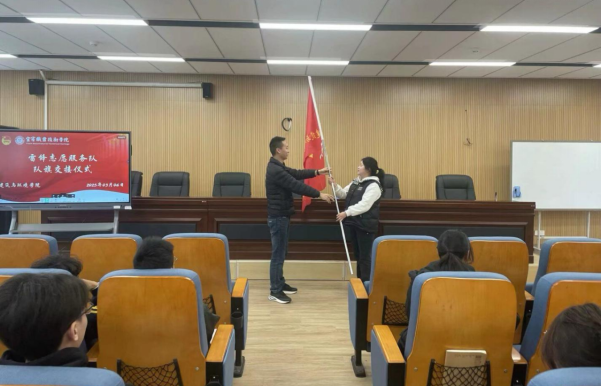 仪式在庄严的氛围中拉开帷幕。学院团总支副书记朱国庆老师为新队员授旗,象征着志愿服务精神的接力与传承。老队员代表代钰同学发表了深情的讲话,她回顾了在服务队的点滴经历,分享了参与志愿服务的难忘瞬间。她提到,面对困难与挑战,队员们始终齐心协力、无私奉献,圆满完成了各项志愿活动,为社会贡献了自己的力量。这些经历让老队员深刻体会到雷锋精神的内涵,也更加坚定了他们投身公益的决心。代钰鼓励新队员们珍惜机会,积极参与志愿服务,用实际行动践行雷锋精神。