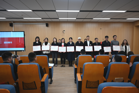 会上,郭莉梅院长宣读岗位聘用文件,强调通过科学设岗优化师资结构,夯实学科发展基础。在聘任仪式环节,郭莉梅院长为综合管理科、教学管理科、学生管理科负责人颁发聘书;建工、建装、建筑设计、建筑智能、工程造价等教研室主任依次为专兼职教师及实验员颁发聘书;受聘教师代表作表态发言,承诺以岗位职责为契约,将个人成长融入学院“双高建设”及高质量发展。