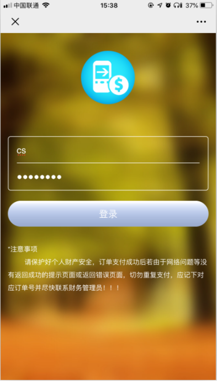 点击“智能财务”à“费用缴纳”,跳转到登陆页面,输入登陆用户名和密码(初始密码为学号或者身份证号后六位),勾选费用项点击支付(如费用允许部分支付,可修改支付金额后再支付),跳转到微信支付页面,选择银行卡,输入密码,提示支付成功。此时返回或者关闭支付界面。如下图所示