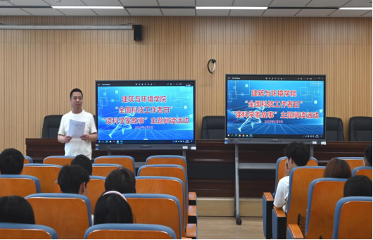 6月9日,建筑与环境学院在鲁班园211多功能教室组织开展“全国科技工作日”暨“读科学家故事”主题阅读活动。建筑与环境学院相关老师、辅导员及建筑设计专业2023、2024级学生通过多元形式感悟科学家精神,汲取创新力量。