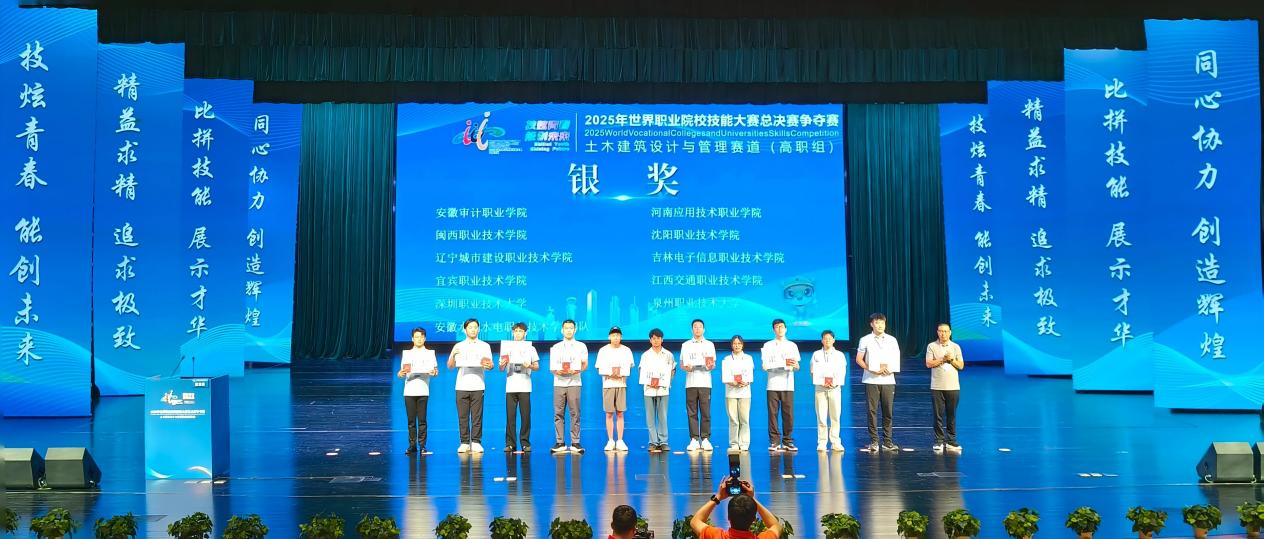 8月29日,2025年世界职业院校技能大赛总决赛争夺赛“土木建筑设计与管理”赛道(高职组)在甘肃交通职业技术学院圆满落幕。我院代表队与来自全国183支参赛队伍、715名顶尖选手同台竞技,凭借卓越的专业技能与出色的团队协作,勇夺银奖,创造了学校在该赛道的历史最佳成绩。